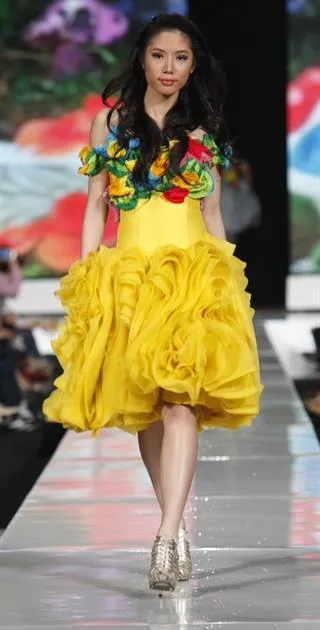 Menyeberang ke negeri Sakura, Hian Tjen membawa hadirin ke rangkaian busana beraken salur pada Mizuhiki. Seni kuno Jepang mengolah ikatan pada pedang samurai ini diinterpretasikan dengan baik pada gaun-gaun malamnya. Anggun tapi berani.