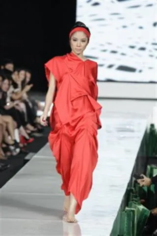 Di bagian selanjutnya, pemenang kedua LPM 2007, Zacky Gaficky masih mengeluarkan busana berpotongan longgar dengan detail drapery. Teknik ‘cubit’ sana sini ia kerjakan di bagian bahu, pinggul, paha hingga punggung. Palet warna hitam, putih, dan merah yang penuh dengan aura spirited mendominasi dengan permainan material satin dan sifon.