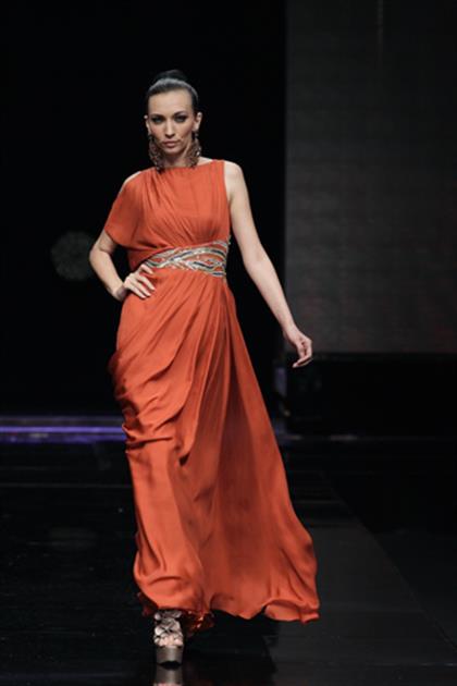 Untuk koleksi pada show kali ini, Sebastian Gunawan mengangkat tema ‘Charming Blend’ yang terinspirasi dari gaya busana tahun 1920 hingga 1960. Berbagai jenis gaun muncul dengan nuansa kemewahan yang nyata—aksen belt dan ornamen swarovski yang didominasi warna biru, oranye, hijau, abu-abu, dan nude dengan kilau keemasan.