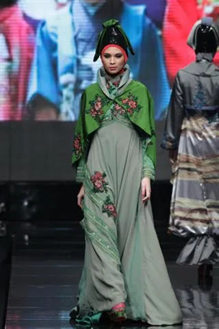 Lain lagi dengan perancang muda Dian Pelangi yang mengambil tema Russkaya Raduga, Dian yang terinspirasi dari negeri Rusia member Anda inspirasi padu-padan busana muslim untuk musim dingin. Dian juga tak melupakan ciri khasnya yang bermain dengan warna-warni pelangi seperti cobalt blue, merah, turquoise, hitam. Penambahan aksesoris perak membuat busana tampil memesona dengan aksen ruffles, lipit.