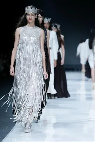 In the closing, Oscar Lawalata’s couture inspired by 1920 era in Paris adorned the runway. The breathtaking collection portrayed the exotic women swathed in flapper dress with attractive satin fringe echoing Paul Poiret in that era. Almost all dresses he exposed were dashingly designed in midi cutting and backless model. The alluring colors as red, moss green, black, peach orange and mustard were harmonized delicately in the luxurious apparel.