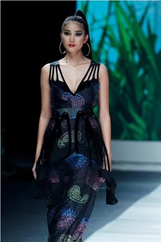 Perhelatan diawali dengan hadirnya koleksi dalam dominasi warna gelap seperti hitam, merah marun, dan cokelat yang dikombinasikan dengan motif batik. Gaya kasual dan ringan dari permainan mullet dress, jumpsuit, dress asimetris, dan peplum dengan teknik laser cut sangat menarik perhatian. Kesan modern sekaligus seksi hadir dalam busana beraksen transparan. Hadirnya rok balon, celana palazzo, dan blus ruffles pun turut menampilkan selera urban.