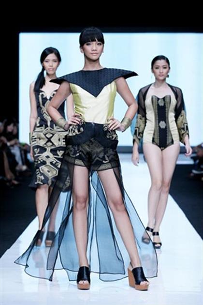 Victoria Schofield. Bersama-sama, mahasiswa Binus International dan lulusan Northumbria University mengunjungi pulau Lombok di Nusa Tenggara Barat. Inspirasi rancangan didapat dari kunjungan langsung ke para pengrajin tenun Lombok hasil binaan Cita Tenun Indonesia. Teknik dan aplikasi tenun inilah yang diwujudkan dalam koleksi Hyper Culture. Penggunaan berbagai material—dari satin hingga chiffon—dengan sentuhan etnik dari tenun Lombok menjadikan show ini berbeda; sarat nuansa tradisional modern.