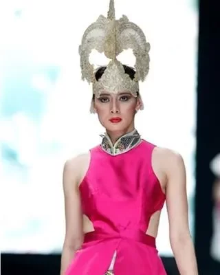 A designer from Makassar, Toton Januar, mesmerized the guests by presenting a collection that was inspired by natural beauty. He selected tropical pitcher plant with a dynamic streamline accessorized with a bud-like hairpiece over electric blue, tangerine, and shocking pink. The additional Tasikmalaya embroidery also prettified several collections in this runway.