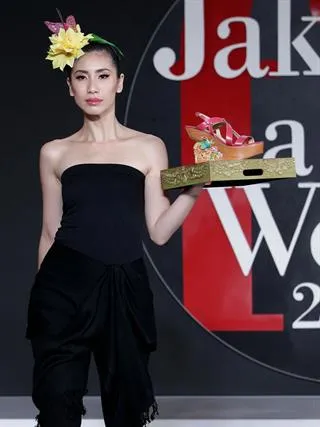 Lianna Gunawan showcased her newest design of premium shoes that combined batik and carving in her label Lianna G. The products illustrated her consistency in exploring the rich culture of Indonesia. Lianna with the theme “Capturing Nature, Transforming Soles” showed drawings of frangipani, birds and peacocks on the wood-based shoes. The concept behind this idea was to utilize unused mahogany and transformed it to premium-look heels. She hoped that this transformation-to-art would bring out colors and happiness from the wearers.