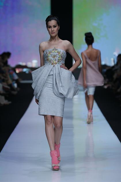 Sedangkan Maria Lu, mencuri perhatian lewat headpiece-nya yang meliuk unik dan memesona di kepala para model. Marie Lu bermain dengan jumpsuit berpadu turban, atasan one shoulder hitam dengan rok cokelat, sampai dress kemben dengan hiasan metal melingkari dada. Semua itu terlihat feminin namun ada sentuhan berani juga. Sementara Andhita Siswandi yang untuk kali keduanya tampil di Jakarta Fashion Week, membawakan koleksi bertema ‘One Night Evening”. Berlatar kisah seorang perempuan urban Jakarta yang beraktivitas dari pagi hingga malam dalam pakaiaan penuh gaya. Sungguh menarik bagaimana dress yang diperagakan selalu dipadankan dengan sepatu berkaos kaki warna pink di peragaan ini.