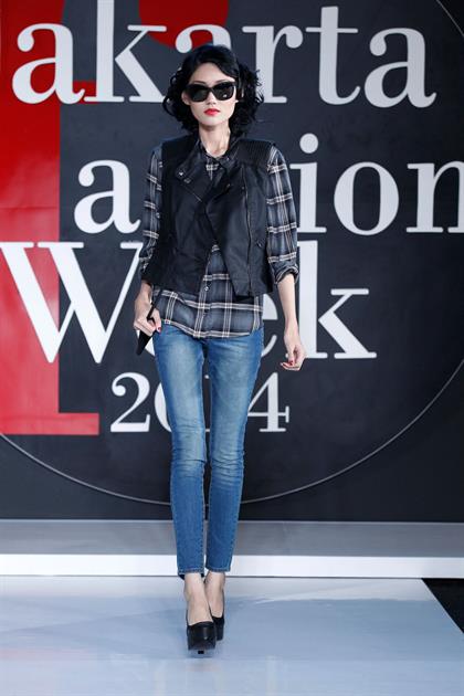 Bagi yang ingin tampil lebih berani, Mango menampilkan skinny pants motif tartan yang dipadankan dengan biker jacket warna hitam. Satu warna dominan, sudah cukup menarik semua perhatian. Sementara jeans, yang menjadi lambang rebel, tampil semakin rebel dalam bentuk rok jeans mini yang dipadu fish net stocking. Seksi sekaligus maskulin.