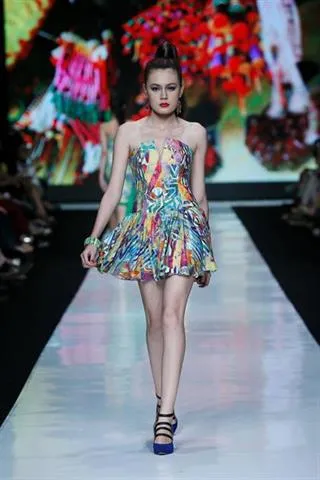 Warna merah, biru, dan kuning mendominasi koleksi Blaire. Mini dress dengan full print dan didesain sesuai dengan lekuk tubuh wanita memancarkan rasa percaya diri para wanita.