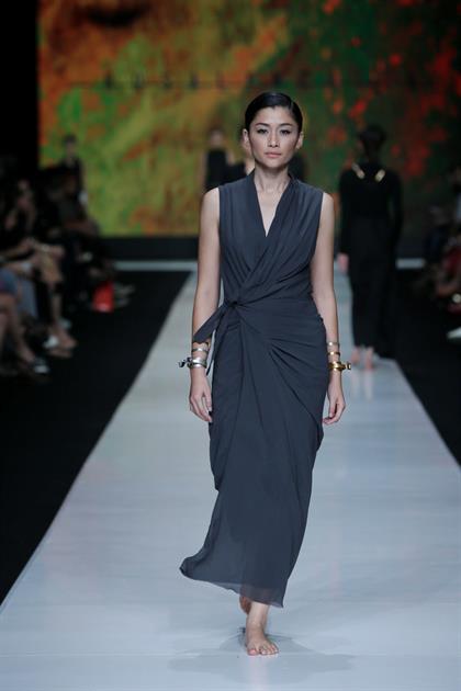 Koleksi Jii bertajuk Spots terinspirasi anjing dalmatian. Label milik Gloria Agatha ini hadir dengan koleksi berpotongan bersih, feminin, dan klasik. Tampak pada dress putih lurus dengan motif anjing yang tak menyolok. Motif dalmatian juga hadir di celana pensil dan atasan off shoulder. Percikan oranye terang pada dress cantik yang menyolok menambah kesegaran.