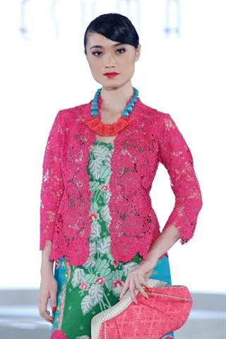 As main theme, Riana Kesuma took dynamic style with vivid color for her debut in Jakarta Fashion Week event. Pink bolero ¾ sleeves with embroidery on batik dress or cape with flourish batik from Jakarta highlighted by yellow list embroidery combined with matched yellow toned skirt. Her eight modern eye catching collections still had the Indonesian character on them.