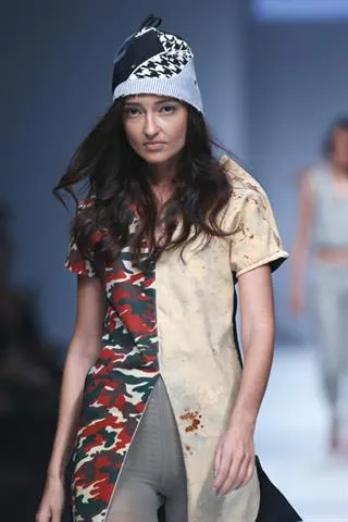 In second sequence, Catherine Emilia showcased her label, Nobis Pacem. Catherine enlivened Jakarta Fashion Week 2015’s stage with recycled ready to wear apparel. In her press conference, Catherine stated that five percent of the selling will be donated to a charity program. The unique of this fashion show was the model. They didn’t walk down the catwalk with the body straight and rigid face, but walk casually with their lazy face, even acted yawn. She named her collection “Gula”, means throat in Latin. Catherine intended to show the freedom to choosing the life path through her creation.