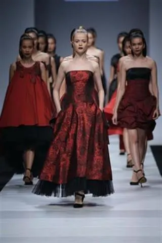 Meanwhile, Verena Mia with her theme “Bloody Mary” designation to Queen Mary I, Henry Tudor VIII’s daughter, because her violence eradicated Heretic and Protestant, aimed to return England became a catholic country. The darkness in that century presented in blood red and blacks that dominated Verena’s collection, there were heavy ball gown with hugging bustier (the Tudor Dynasty gown’s lookalike) and also the mermaid gown or Y line silhouette.