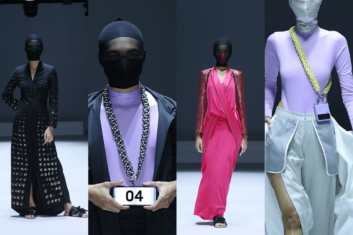 Kesan futuristik dari Jeffry juga hadir lewat pemilihan ski mask sebagai bagian dari aksesori pelengkap tampilan. Tidak hanya itu, koleksi Jeffry Tan juga dilengkapi koleksi terbaru smartphone Samsung, yaitu Galaxy Z Fold3 5G / Z Flip3 5G. Ponsel ini hadir sebagai medium penanda looks, sebuah interpretasi modern dari sebuah tradisi peragaan busana di masa lampau.