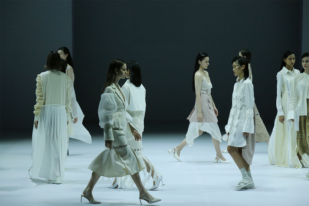 Dari segi siluet, Jeffry Tan masih menampilkan garis-garis desain minimalis nan modern yang menjadi khasnya. Di beberapa looks, Jeffry juga mengambil inspirasi dari streetwear untuk pakaian laki-laki dan sedikit sentuhan athleisure lewat body suit warna lilac.
