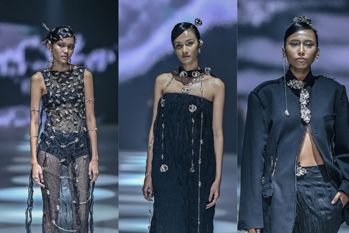 Blanc Studio membawa kita ke dunia tekstur yang memikat melalui koleksi berjudul Senses. Koleksinya di FFA 2023 ini fokus kepada siluetnya yang tegas dan diperkuat oleh penggunaan warna, seperti hitam, putih, dan abu-abu. Detail zipper dan unfinished menambah keunikan koleksi yang terdiri dari top, blazer, jaket, pants, hingga coat.