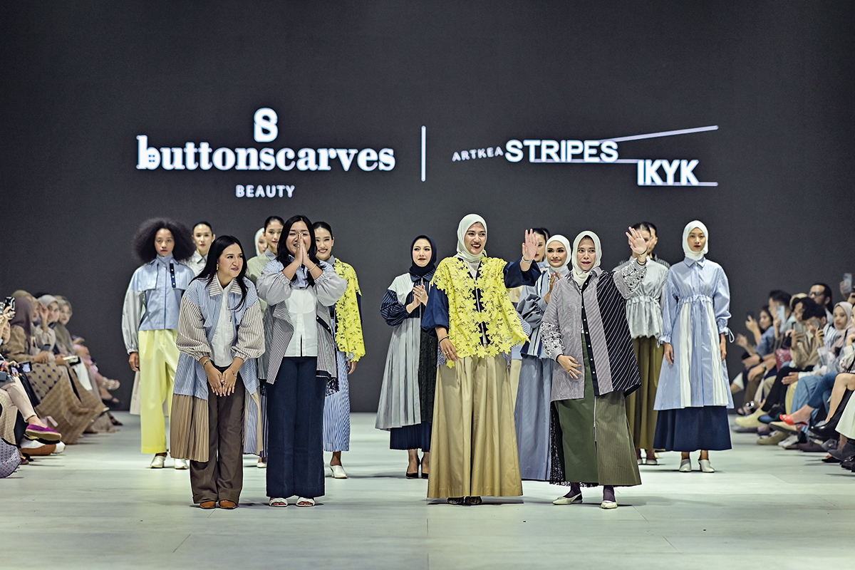 Kolaborasi ARTKEA Stripes x IKYK, Nada Puspita, Benang Jarum Couture bersama Buttonscarves Beauty di JFW