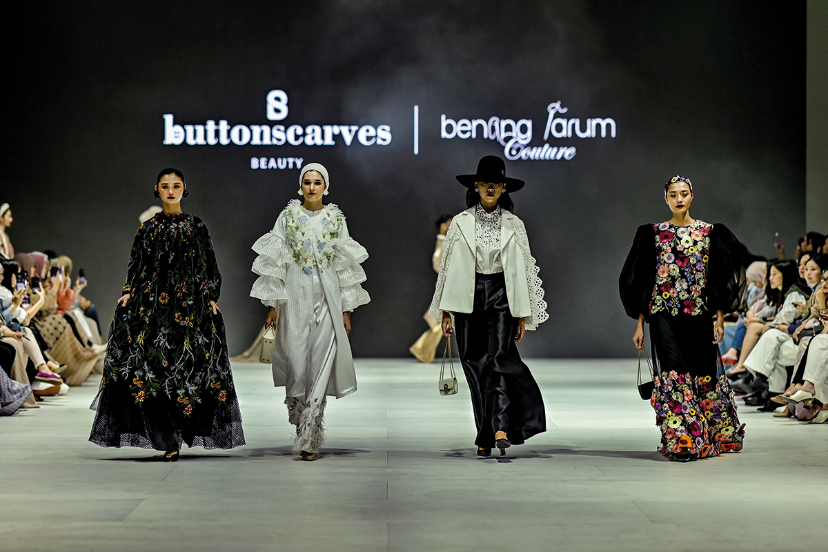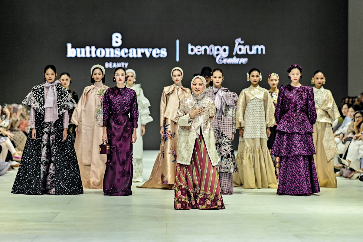 Empat jenama yang hadir dalam rangkaian show persembahan dari Buttonscarves Beauty ini adalah ARTKEA Stripes dalam kolaborasi bersama IKYK, Benang Jarum Couture, dan Nada Puspita. Keempat jenama membawa pengertian kreatif mereka akan konsep “Limitless Beauty” sembari menunjukkan warna unik mereka masing-masing.