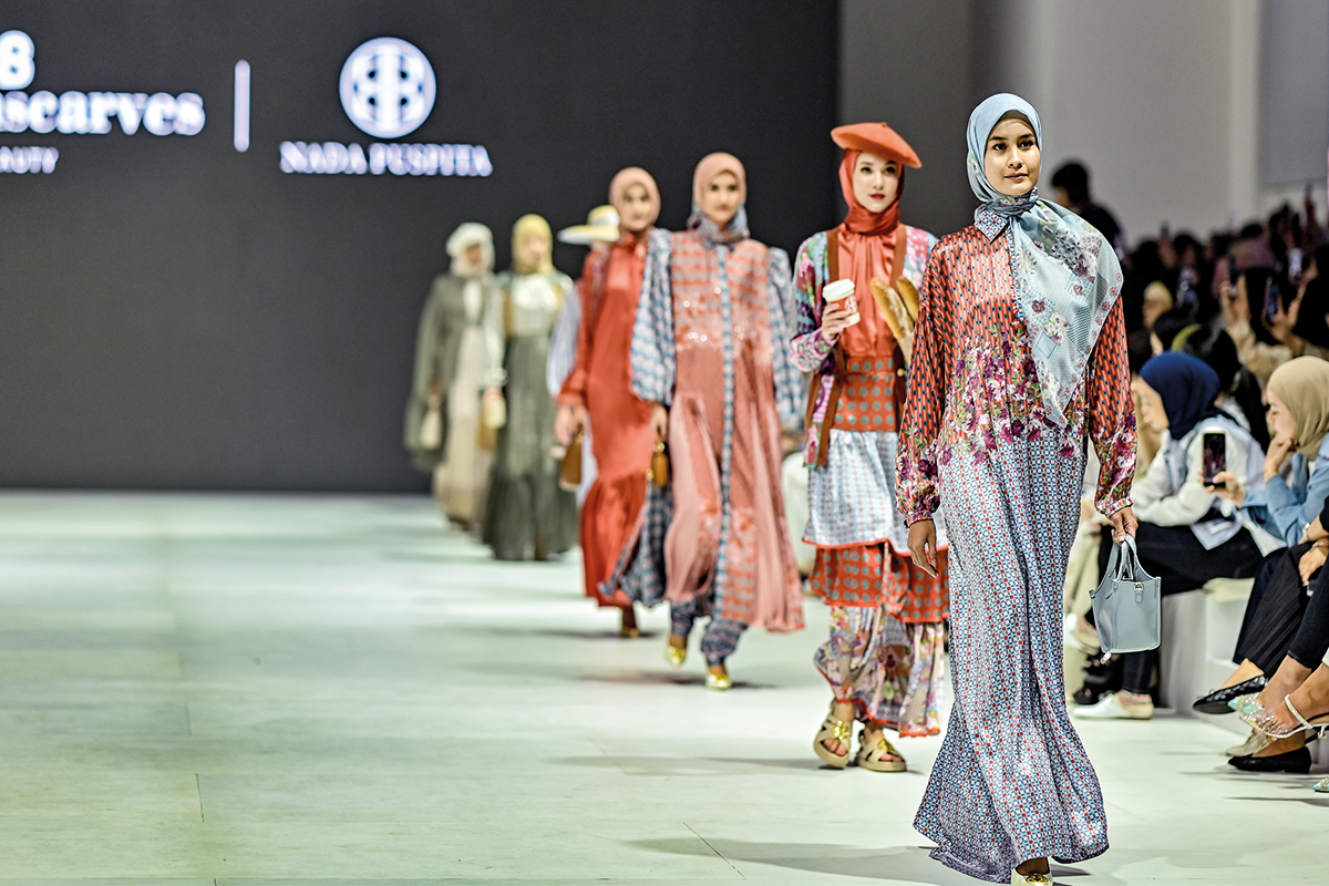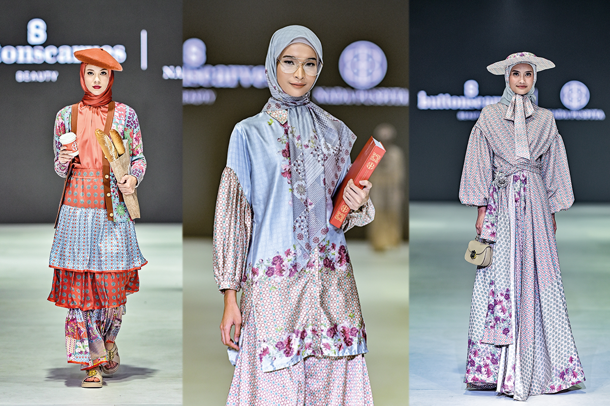 Sebagai brand yang juga dikenal akan hijab print bermotif cantik dan kental dengan nuansa floral, Nada Puspita melalukan styling menarik dengan memadukan print hijab dengan busana yang dikenakan para model. Para pengguna hijab dapat memilih deretan hijab berbahan ultrafine voile yang nyaman, adem, dan melekuk manis mengikuti bentuk wajah.