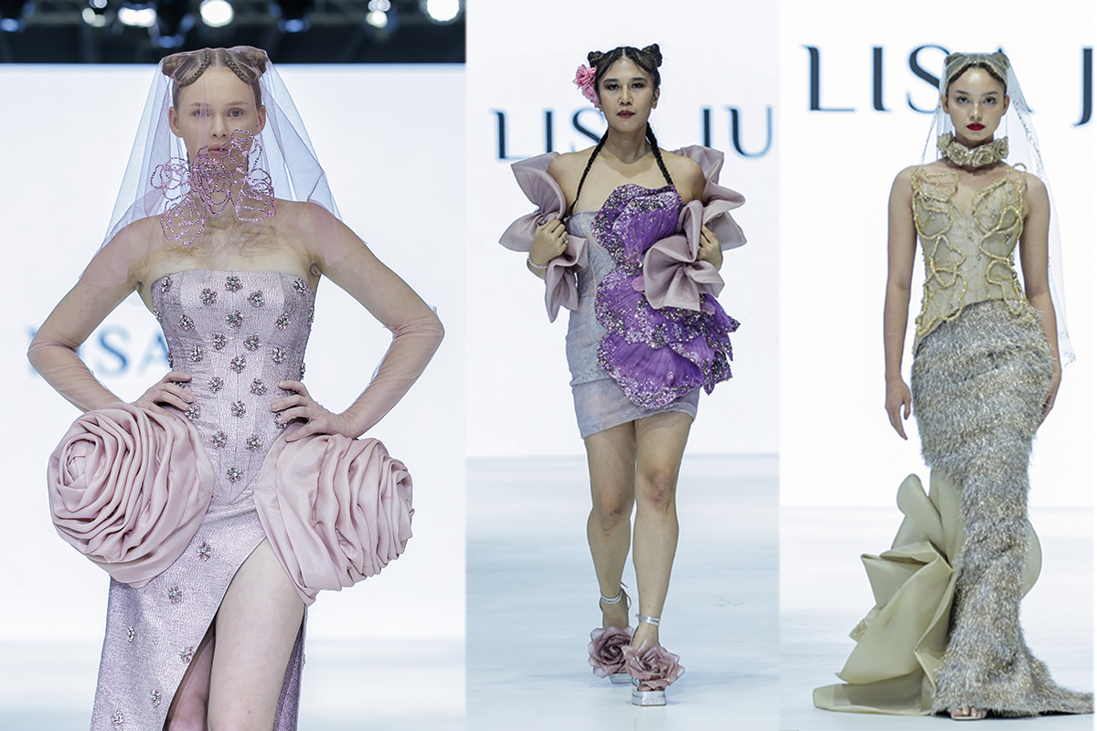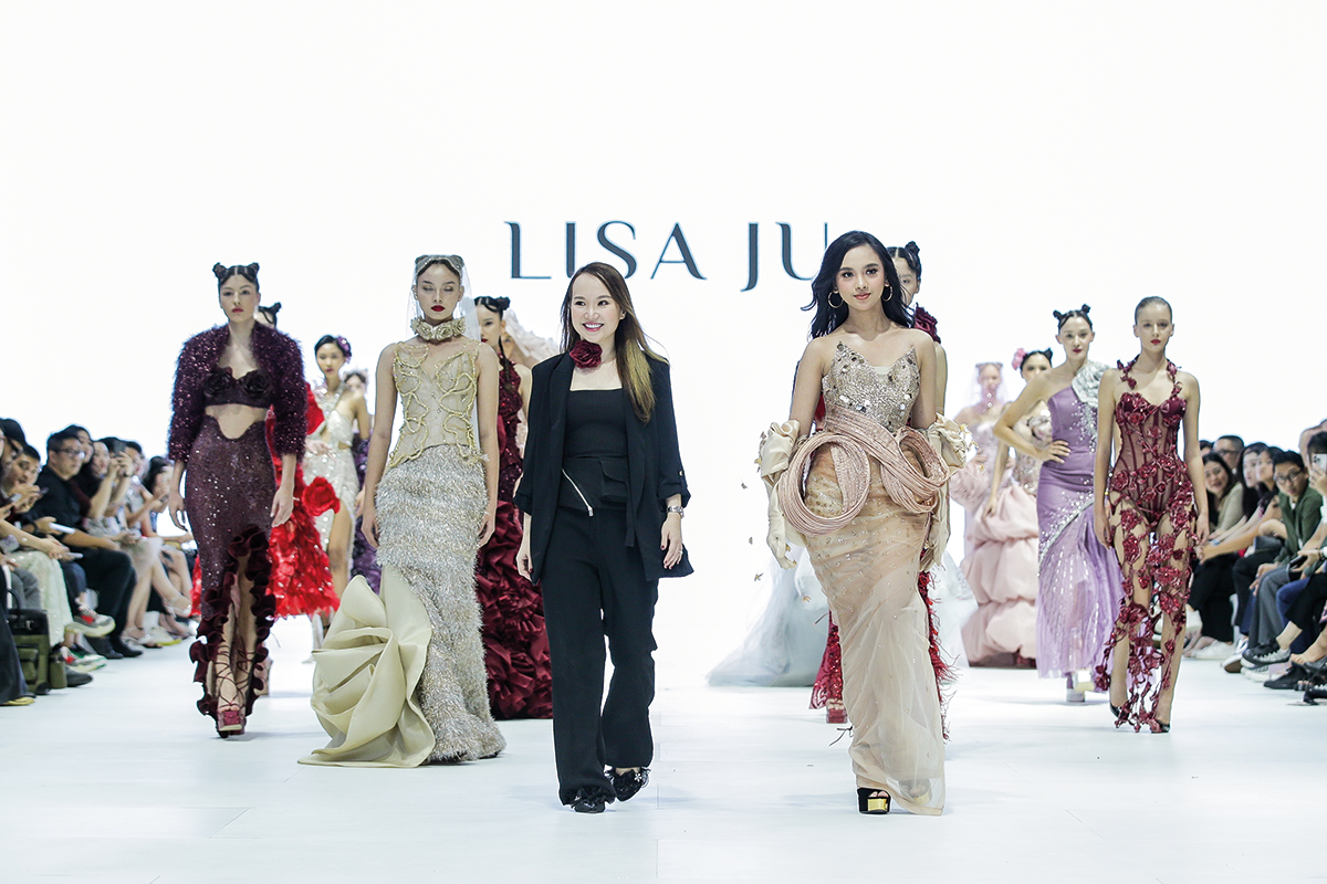 Lisa Ju Sebagai desainer yang memfokuskan dirinya pada adibusana, Lisa Ju menghadirkan "Petales" yang mewah. Dalam koleksi kali ini, Lisa Ju menggunakan berbagai unsur literal dari sebuah bunga ke dalam desain gaun berwarna lembut.