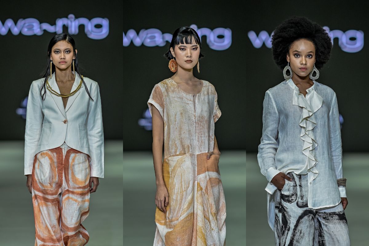 Waring merupakan jenama mode high-end Aborigin yang berasal dari Naarm, Melbourne. Jenama ini identik dengan karakteristik budaya dan seni artistik tradisional yang sangat kompleks. Untuk JFW 2024, Wa-ring menampilkan koleksi berjudul "Nagambii", yang berarti "sumber air" dalam bahasa Aborigin Taungurung.