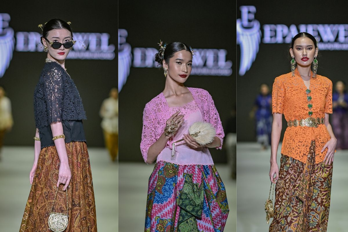 Nuansa nusantara pun terasa semakin kental karena EPAJEWEL mempresentasikan koleksi perhiasannya yang terbuat dari brass, gold pleated, zircon, dan kristal tersebut bersama kebaya berpotongan modern. Perhiasan yang dipresentasikan meliputi bros, kalung, anting, ikat pinggang, tusuk rambut, cincin, hingga kacamata hitam berhiaskan aksesori emas.