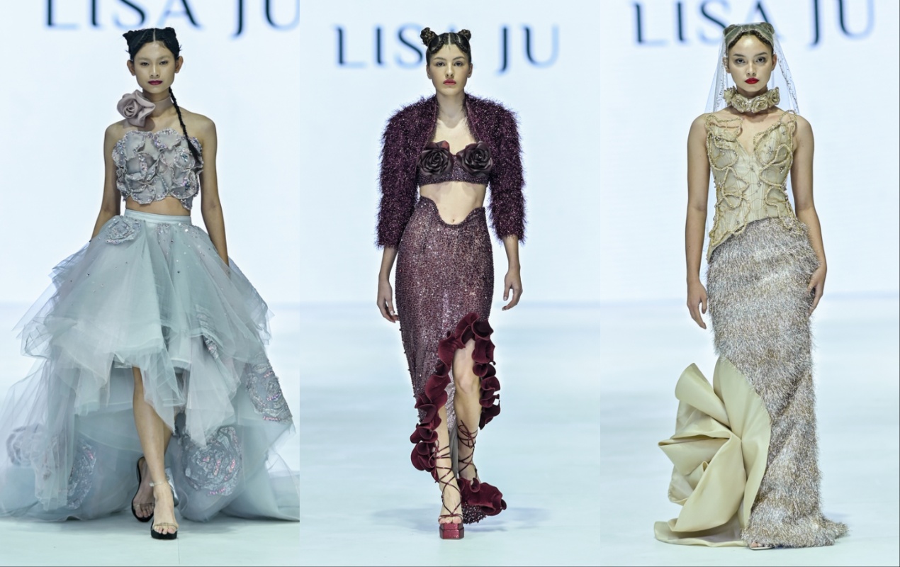 Lisa Ju menghadirkan koleksi Petals yang menjadikan keindahan bunga sebagai inspirasi utama. Dengan teknik draping dan manipulasi kain, Lisa mengubah gaun-gaun adibusananya menjadi karya seni floral yang memukau. Setiap kelopak bunga yang diciptakan dengan hati-hati, memberikan sentuhan natural yang indah dan romantis.