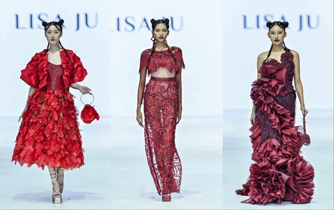 Beberapa busana rancangan Lisa Ju, yang tampil dalam The Magical Fragrance of Confidence Fashion Show, dihadirkan dengan warna merah yang bervariasi. Tak hanya busana, tapi juga pelengkapnya seperti sepatu, tas, bahkan sampai ke riasan wajah. Kesan glamor yang ditampilkan dalam koleksi yang dinamai Petals ini menjadi semakin kuat dengan pilihan warna merah dan merah marun.