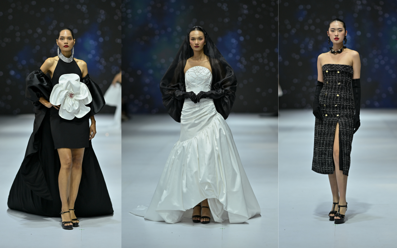 Segmen busana yang lebih mewah menampilkan aneka gaun bersiluet lebar dengan palet warna elegan seperti hitam, putih, dan sentuhan ungu tua. Gaun yang ditampilkan memiliki profil desain yang modern, sesuai dengan tema yang ditujukan untuk wanita abad ke-21. Tambahan aplikasi bunga statement, train yang menyapu lantai, tudung penutup kepala menyerupai mantilla, koleksi ini menyuguhkan kesan grande.