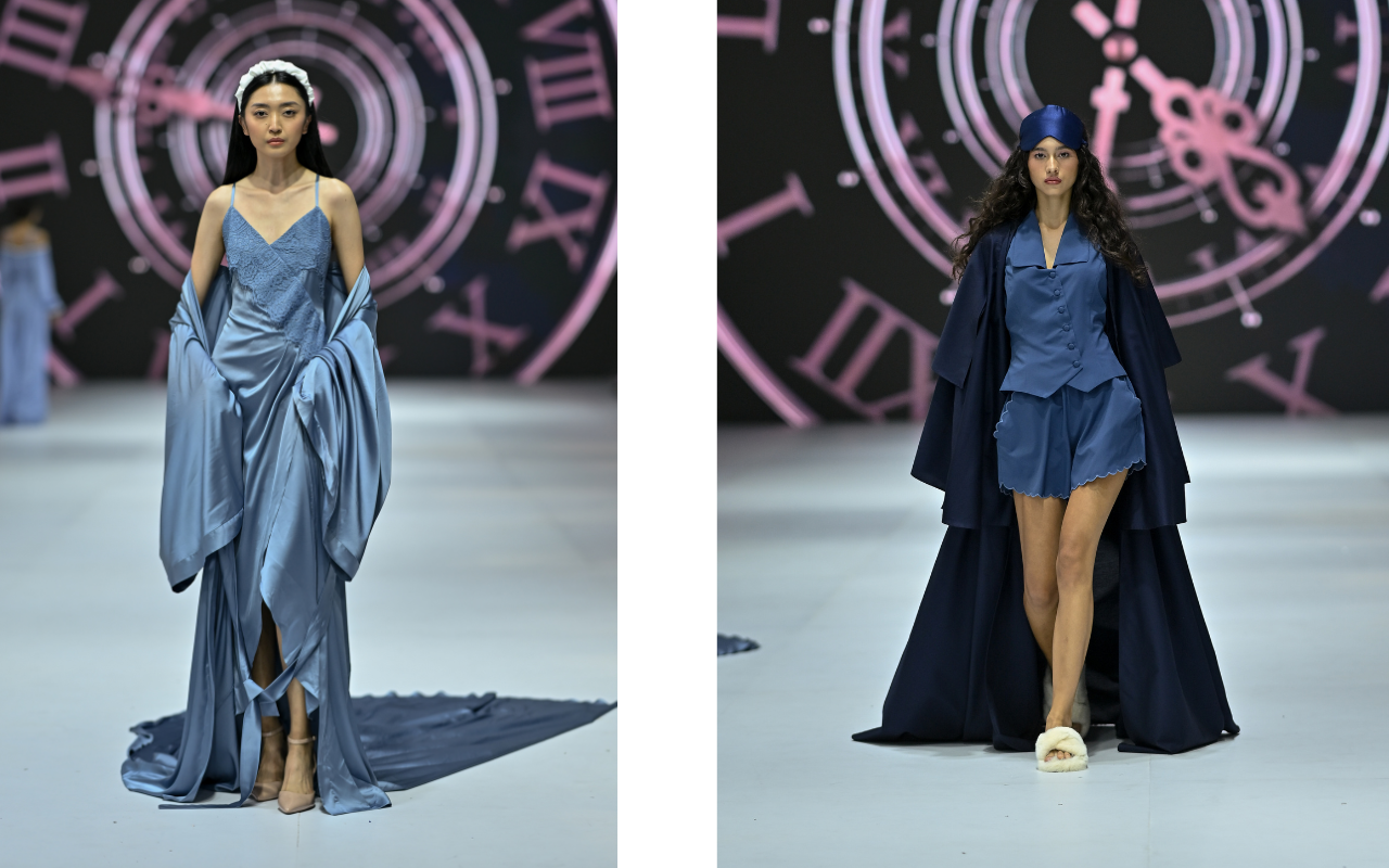 Koleksi ditutup dengan sleepwear yang mewah tapi tetap nyaman dikenakan seperti gaun tidur para putri. Kain yang lembut dipadu dengan desain loose drape menyapu lantai dengan elegan dan membungkus pemakainya. Didominasi dengan warna biru kalem, segmen dari koleksi ini membawa desain nightgown ke level selanjutnya.