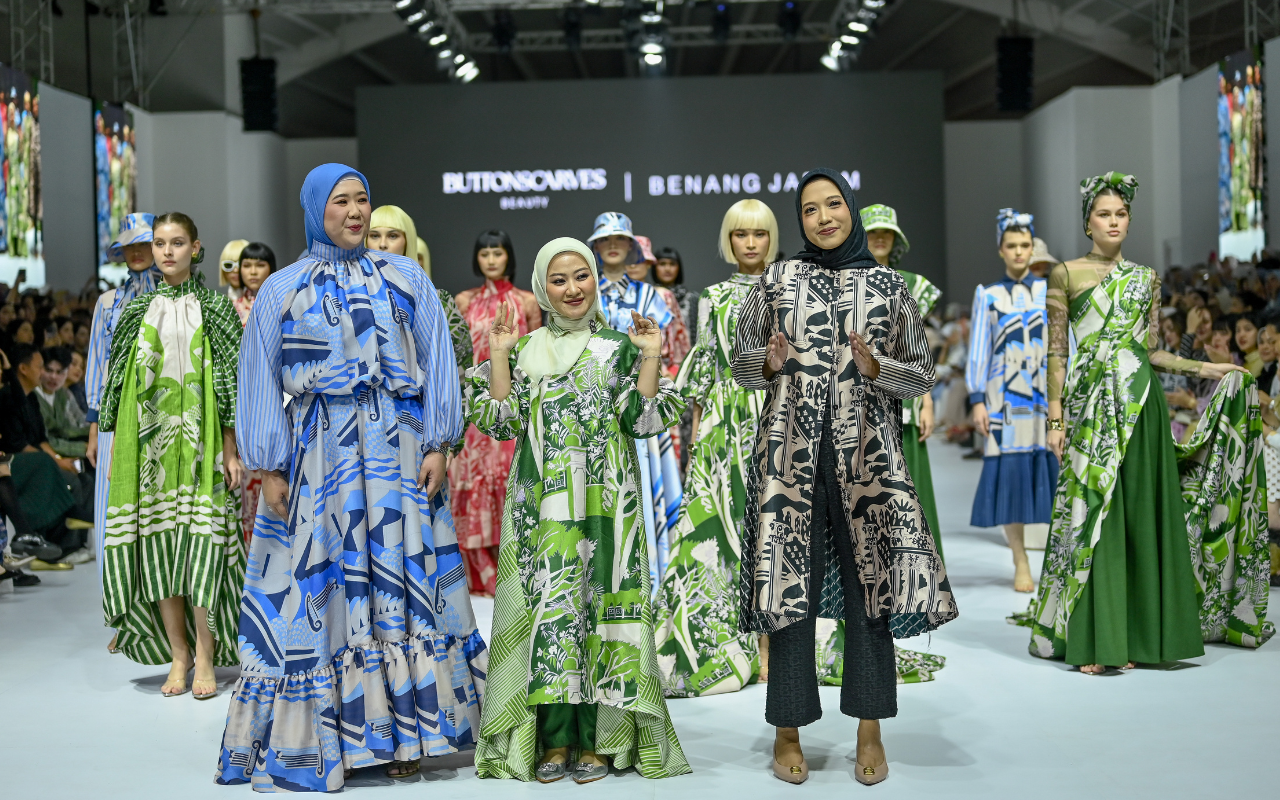 Dalam Jakarta Fashion Week kali ini, Buttonscarves Beauty mempersembahkan dua koleksi bersama jenama luxury modestwear Nada Puspita dan Benang Jarum. Dua jenama yang masih berada di bawah Modinity Group ini dikenal dengan desain modestwear mereka yang sarat motif mewah dan paduan warna berani.
