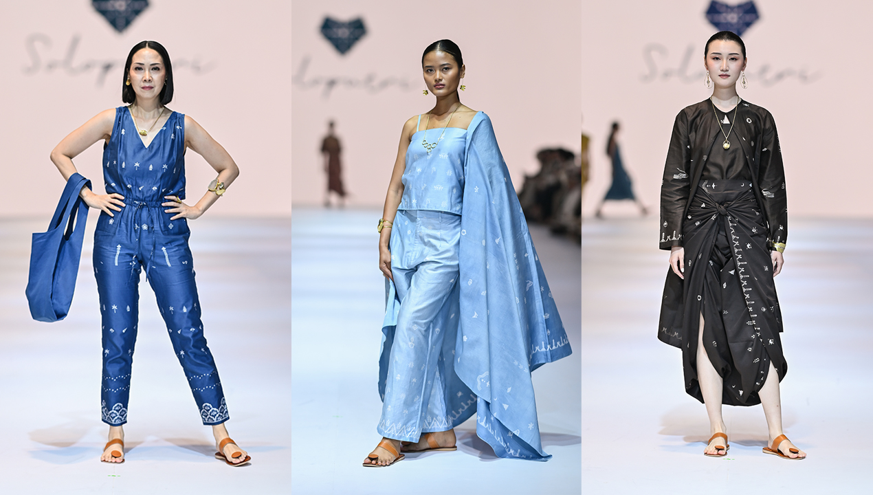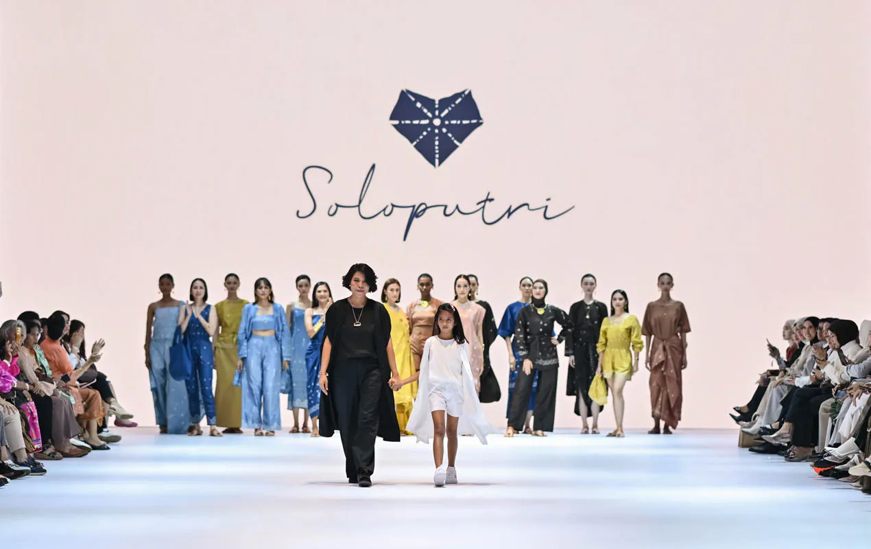 Soloputri, sebuah jenama dengan misi mempromosikan pelestarian budaya dan mendukung pengrajin lokal Indonesia, mengangkat tema Dwipantara yang terinspirasi dari kekayaan budaya Indonesia. Keindahan alam dan kekayaan budaya Nusantara diadopsi menjadi corak yang unik dan variasi warna alam seperti cokelat sage, kuning kunyit, merah bata, dan biru langit.