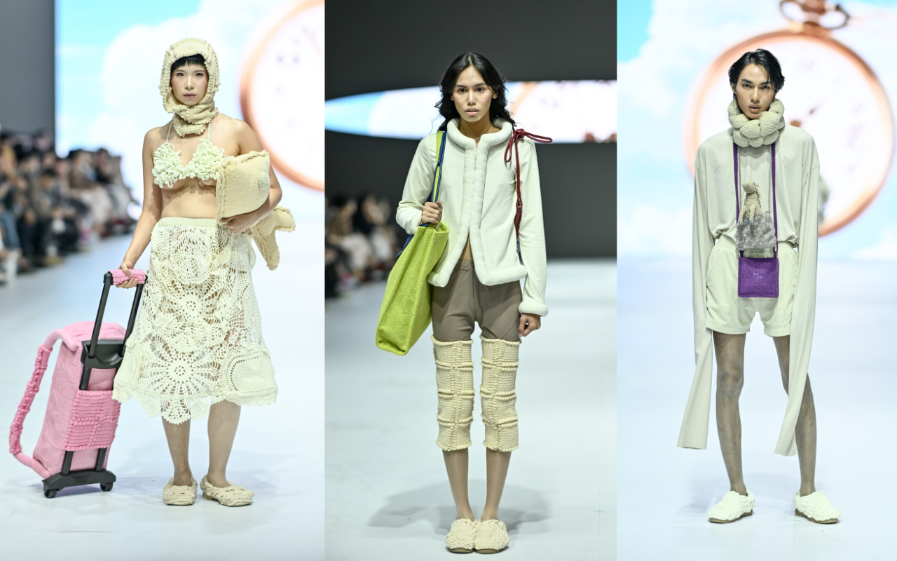 EGON mengajak seluruh audiens Fashion Force malam ini mengikuti sebuah perjalanan yang penuh imajinasi. Terinspirasi dari kultur traveling terutama via pesawat terbang, koleksi ini hadir dengan aspek menggelembung, ringan, dan puffy. Mengutamakan kenyamanan sambil tetap tampil menggemaskan.