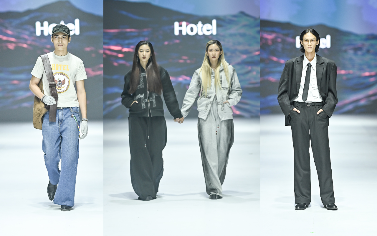 Foto: Koleksi dari jenama HotelDesainnya cenderung modern dan memiliki garis-garis yang tegas. Permainan panelling yang menarik, utilisasi kantong-kantong statement, volume yang cenderung baggy dan nyaman merupakan esensi dari gaya busana city streetwear.
