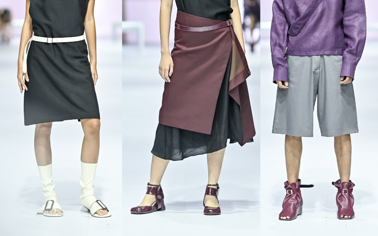 Enam sepatu yang ditampilkan semua hadir dengan dua kemungkinan styling yang berbeda menggunakan fitur desain sabuk senada. Kehadiran sabut pada sepatu bukan hanya sebagai solusi modifikasi bentuk, tetapi juga sebagai referensi dari inspirasi model sepatu pada era 1820 saat model sepatu boots serta sol tinggi mulai diproduksi untuk mengakomodasi kenyamanan pemakai.