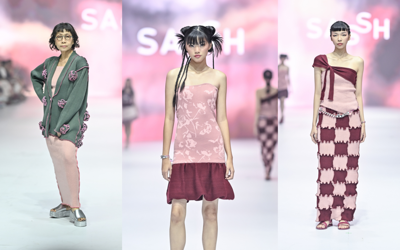 Foto: Koleksi dari jenama SasshKoleksi ini didominasi oleh paduan palet warna pink, marun, dan kelabu dewasa. Kombinasi yang menjadi titik tengah antara usia muda dan matang. Gradasi generasi ini disampaikan melalui pemilihan dua muse, yaitu influencer Satine Zeneta dan Tina Rianti. Pesan utama Sassh bahwa keindahan seseorang adalah sesuatu yang tak lekang oleh waktu, begitu pun busana. Masa pakai yang terentang panjang dari sebuah busana memiliki relasi yang lebih selaras dengan alam serta keindahannya tersendiri.