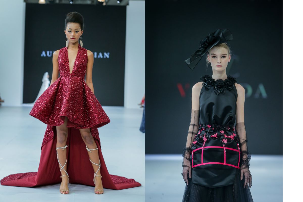 (Foto dari kiri ke kanan: Koleksi Audrey Vivian dan Valeda di JFW 2023)