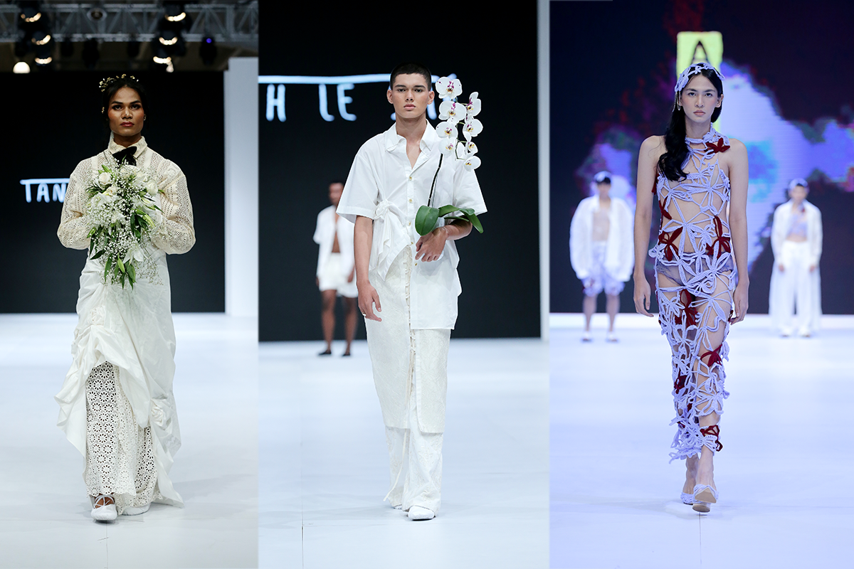 Motif bunga tidak selalu hadir dalam bentuk print. Dalam koleksi yang dihadirkan oleh Tanah Le Saé dan ANW, motif bunga dapat terlihat lewat uliran renda rajut maupun tenun.