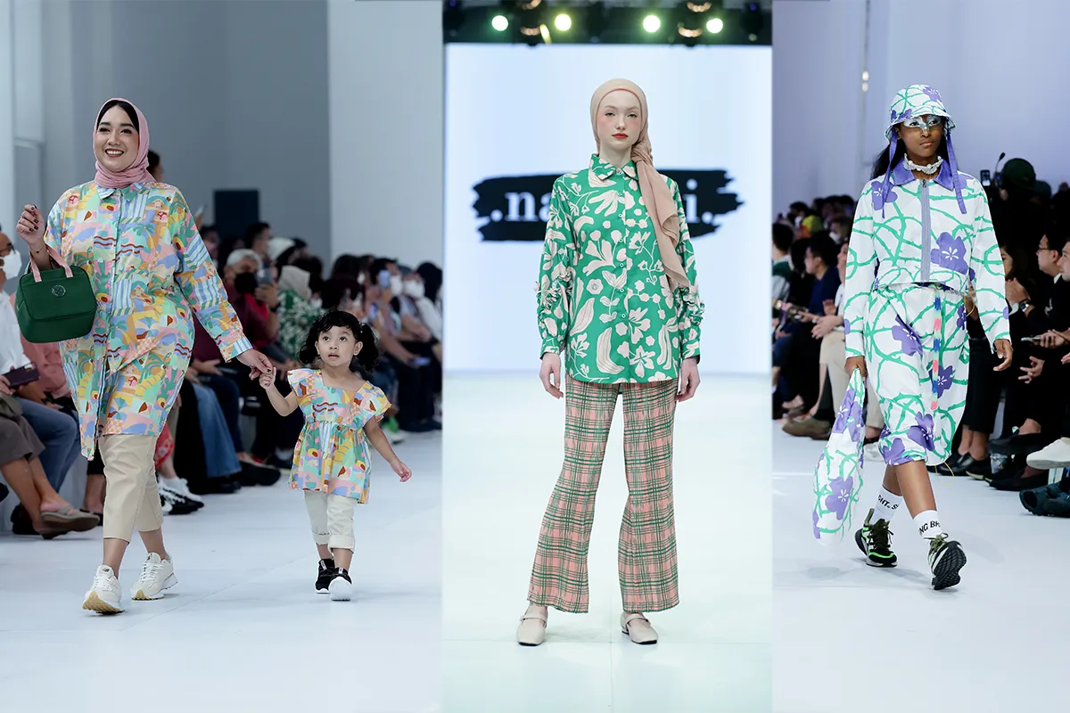Motif floral tidak selamanya harus berdiri sendiri. Jenama modern ready-to-wear seperti Nadjani, RTW, dan Benang Jarum menghadirkan motif bunga yang dikombinasikan dengan motif grafik dengan garis-garis kuat dan paduan warna yang juga bold.