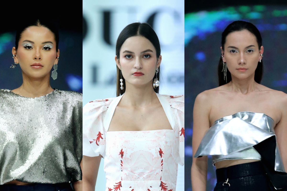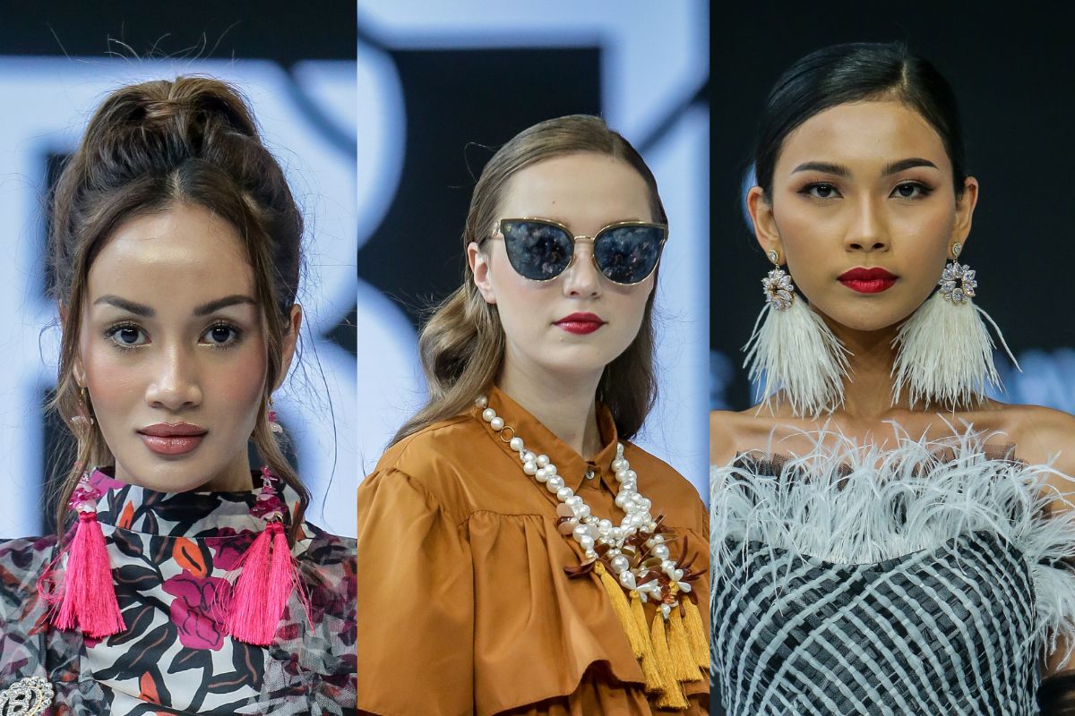 (Foto: Asymmetrical earing dalam show Doucan (tengah) dan Maryalle (kiri dan kana))
