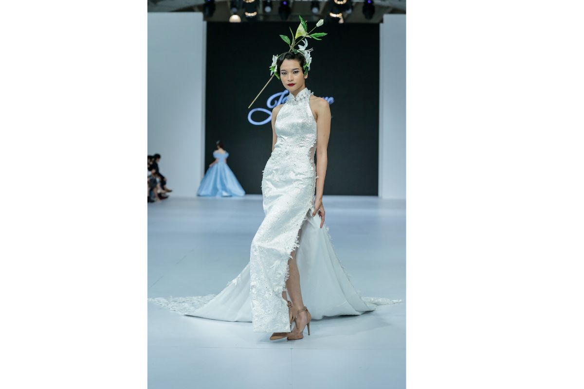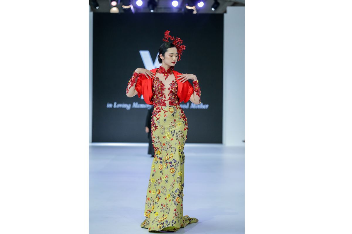 Danny juga mengeksplor model cheongsam serta shoulder less dress bergaya modern yang dikombinasikan dengan kain asli Jepang yang diambil dari koleksi pribadinya.
