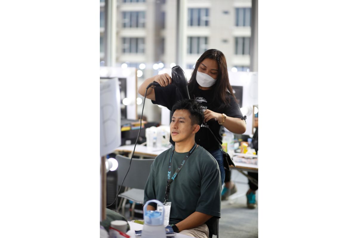 (Foto: Tim L’Oréal Professionnel menata rambut muse pria sebelum show JFW 2023)