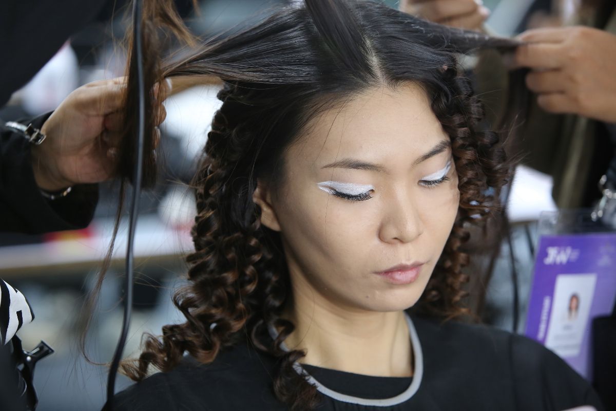 (Foto: L’Oréal Professionnel melakukan proses temporary curlying ke rambut model sebelum show JFW 2023)