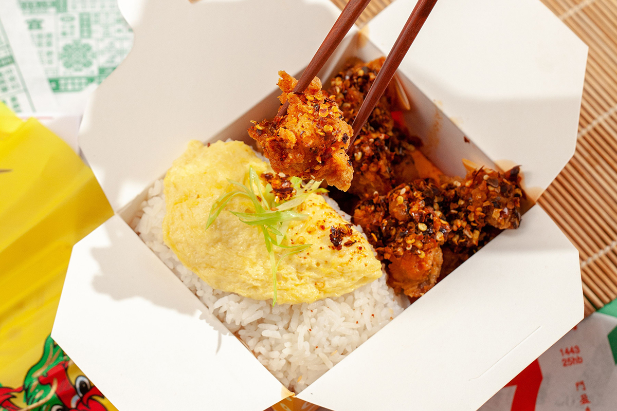 (Foto: Sekotak Chicken Pao, dengan taburan sambal pedas gurih.)