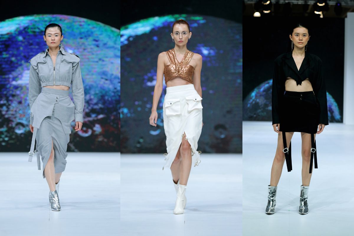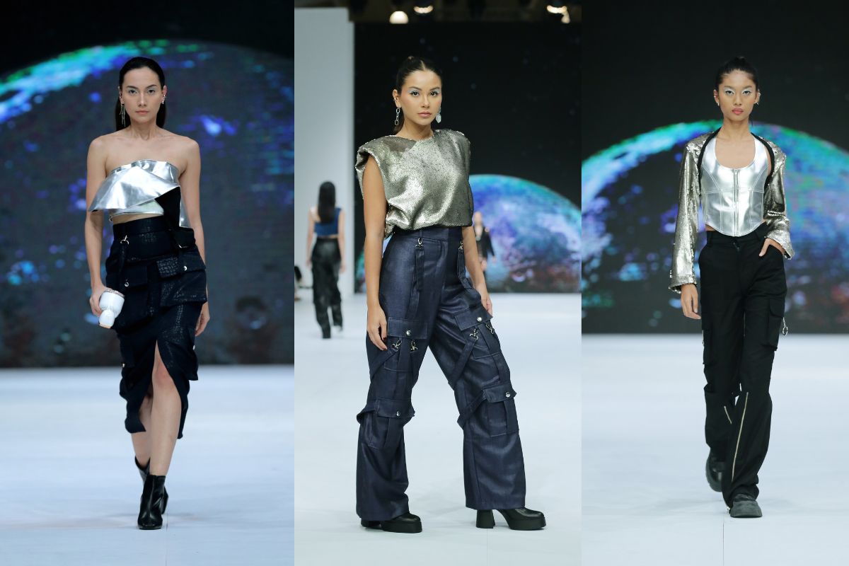 Michelle Maryam, desainer Maryallè ini terinspirasi dari antariksa dalam pembuatan koleksi yang ia tampilkan di JFW 2023. Warna-warna metalik dihadirkan dalam berbagai bentuk atasan, mulai dari shoulderless, sleeveless, hingga outer.