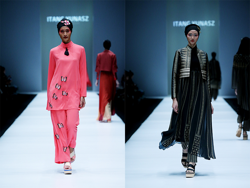 Koleksi-koleksi Itang berpadu dengan tas dari Mira Sayogo serta kreasi alas kaki dari Nefrin Fadlan. Koleksi modern berimbuhkan motif khas Indonesia ini tentunya memberikan sebuah pengertian baru akan kekayaan Indonesia.