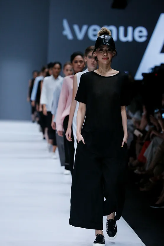 Memasuki sekuen kedua, nuansa hiruk pikuk khas perkotaan mulai terasa. Penonton diajak menikmati dunia berbeda melalui 20 rancangan label Avenue, yang kental akan kesan street look kaum muda. Masih dengan dominasi warna monokrom hitam dan putih, permainan beberapa material pada satu tampilan menjadi aksentuasi yang menarik. Tulle, lace, sifon, beledu, juga katun, berpadu harmonis dengan garis rancang yang edgy namun tetap sederhana. Penampilan salah satu vlogger kenamaan negeri, Jovi Hunter, juga menjadi highlight menarik peragaan koleksi ini.