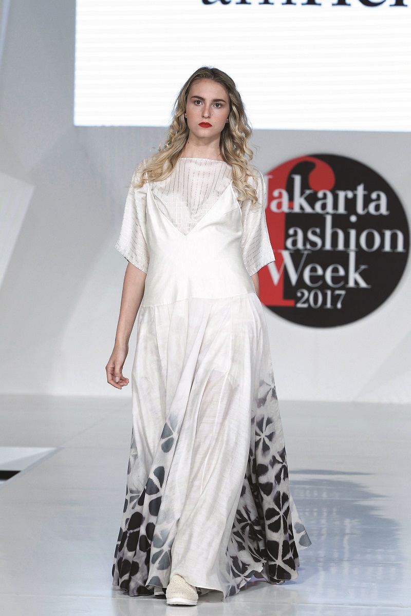 On the night of the second day of Jakarta Fashion in Senayan City Jakarta, Amrich unfolded Spring/Summer 2017 collections. Most of women clothing were designed in loose-fitting style, with very bold ethnicity in patterns, cuttings, and motives: from outerwear, skirt, pants and maxi dress. The dominant colors were mostly natural, such as gray, black, and few bright colors in shocking red pallet and crisp orange.