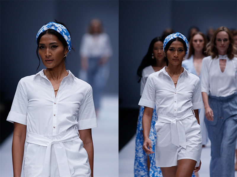 Koleksi play suit serba putih rancangan Paulina Katarina membuka show IFF, 22 Oktober 2016 petang ini. Premium resort wear brand yang dimotori dua kakak beradik, Surya Paulina dan Ratna Katarina ini menyuguhkan 16 koleksi yang didesain untuk menemani kegiatan Anda dari pagi hingga malam. Amalfi Dreams menjadi tema besar untuk koleksi Spring/Summer Paulina Katarina, Wonderlust. Warna teduh putih dan biru muda mendominasi koleksi yang terdiri atas flowy jumpsuit, one shoulder top, dan frill dress.
