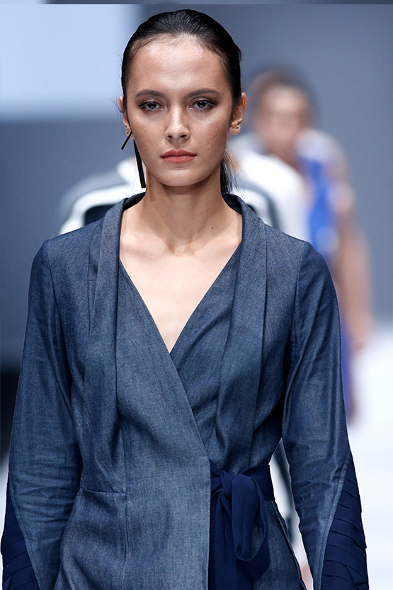 The first generation of Indonesia Fashion Forward, Jeffry Tan, presented a collection that matched with Systema’s colors, i.e. blue, red, and white. Jeffry managed to maintain his signatures by playing with the cut and elegant silhouettes. The bold designs from his collection also echoed the personification of modern women.