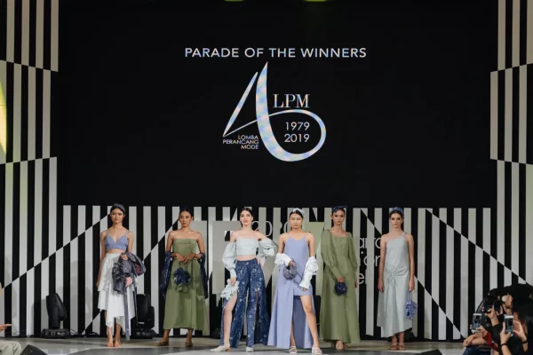 Para pemenang Lomba Perancang Mode (LPM) dan LPM Menswear memeragakan rangkaian koleksi andalannya dalam Parade of Winners di Fashion Atrium…